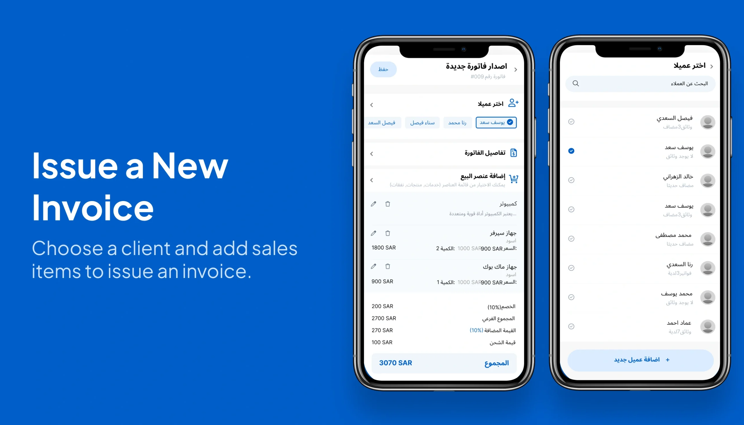 Designed a Professional and Integrated Invoicing System: We created a system that enables users to send professional invoices, which enhances client trust and improves brand image. Developed Workflow Automation Mechanisms: We worked on automating the billing workflow entirely, including sending smart reminders for payments, to save users time and effort. Created Tools for Tracking Payments and Managing Expenses: We included powerful features that allow users to track payments and manage expenses from a single location.