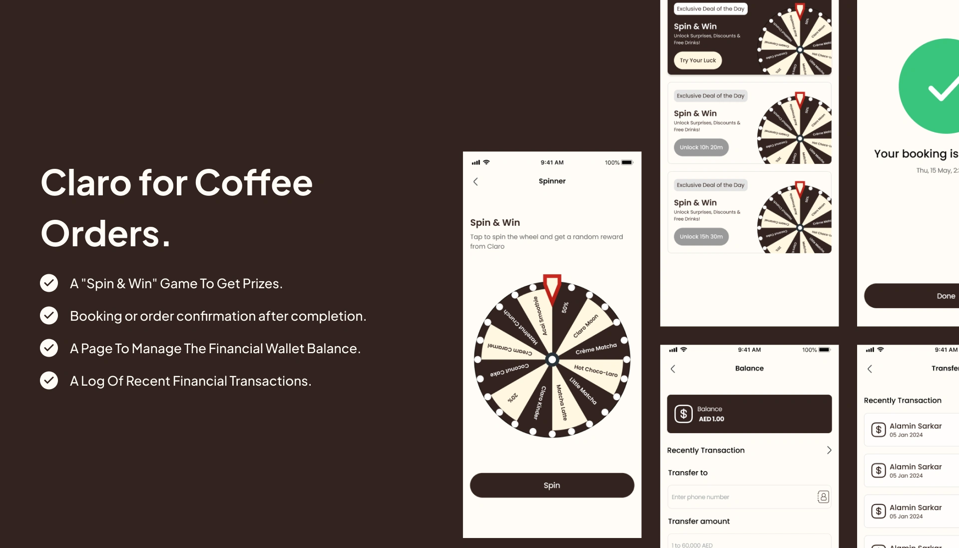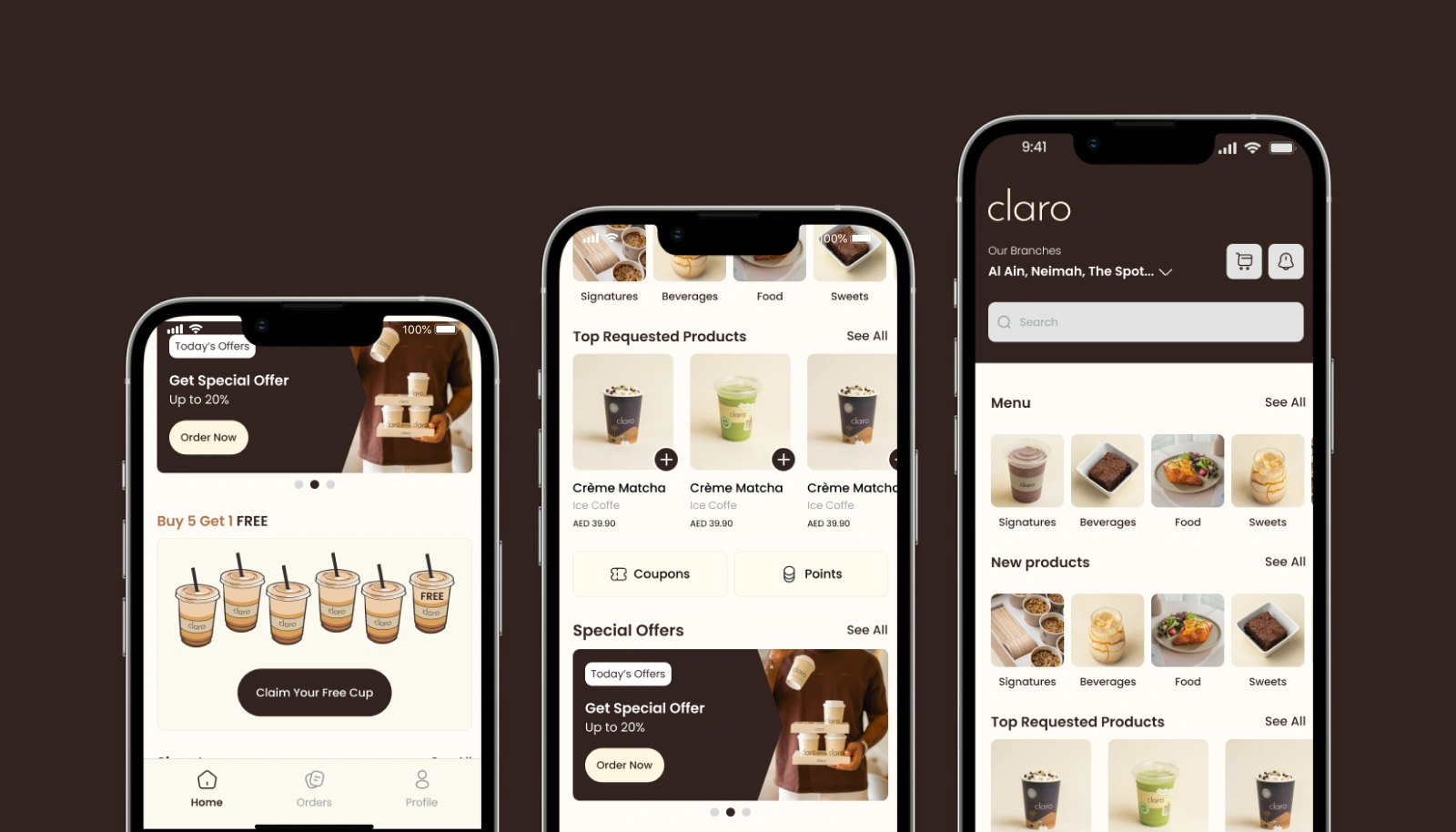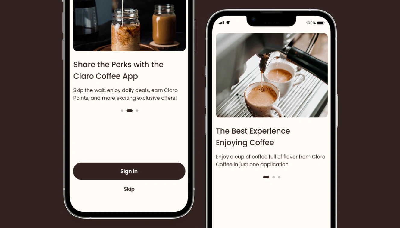 Designed a Seamless Ordering System: We designed an intuitive user interface that allows customers to easily select and customize their favorite beverages, which shortens waiting times. Integrated Advanced Customization Options: We worked on providing a comprehensive menu of customization options (such as milk types and sweetness levels) to ensure all tastes are met. Developed a Loyalty and Rewards Program: We created a points system ("Claro Points") and an in-app financial wallet to incentivize customers for continuous engagement with the platform.