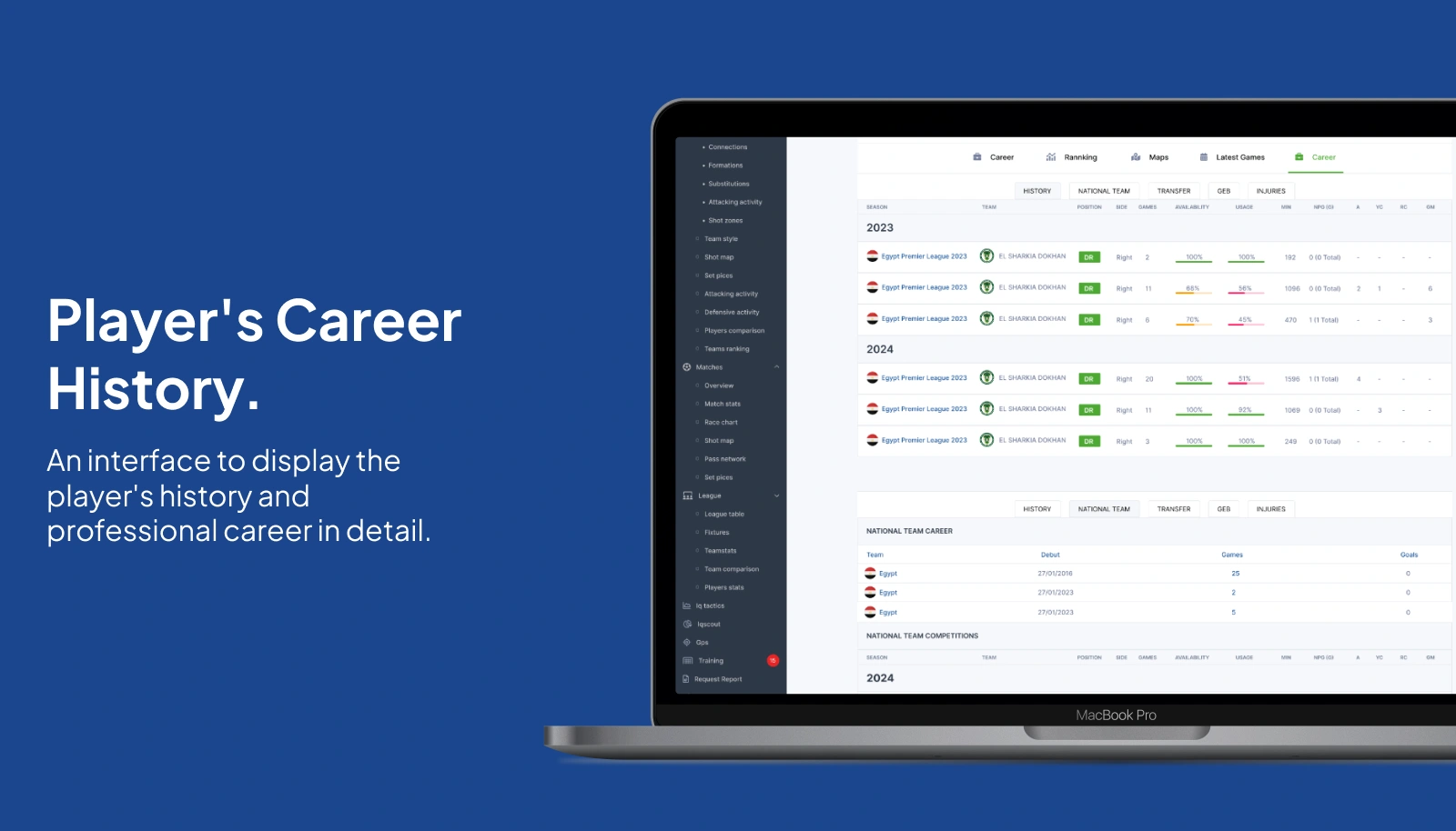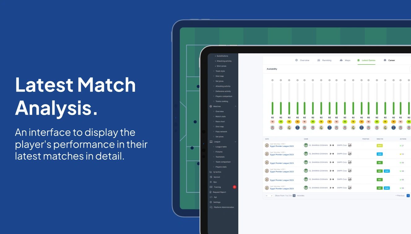 Developed a Data Collection System: We built a sophisticated system to collect and analyze statistical and qualitative data on player performance in matches and training. Created Advanced Analytical Algorithms: We worked on developing specialized algorithms that process data and transform it into actionable insights about each player's strengths and weaknesses. Designed Visual Dashboards: We designed a user interface and dashboards that display data in an easy-to-understand visual manner, making it simple for coaches and players to review performance