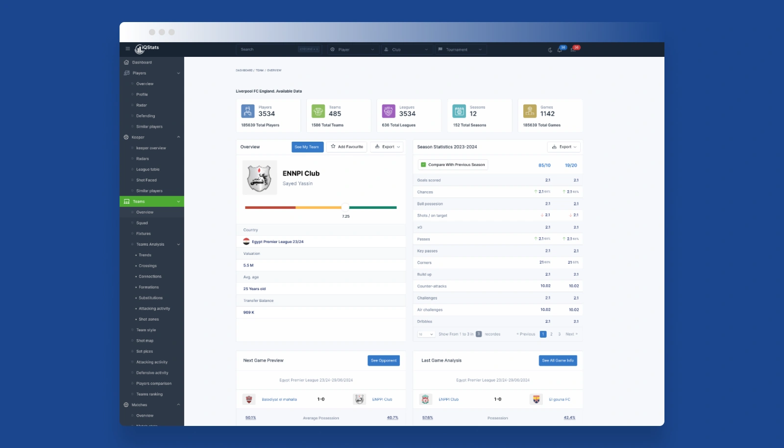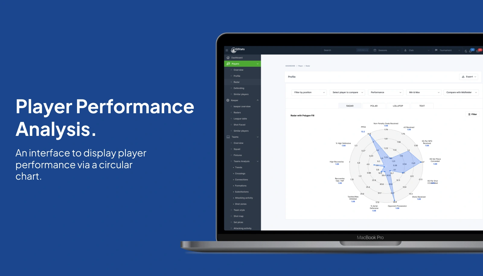 IQSTATS is an advanced football player performance analysis system that provides accurate data on player levels, match performance, strengths, and weaknesses to help them develop and improve.