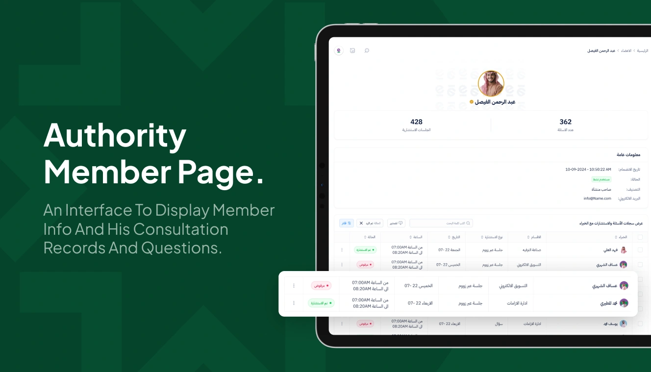 Created a Trusted Network of Experts: We built a secure database of mentors and experts in legal, financial, and marketing fields to provide support to entrepreneurs. Developed Networking and Mentorship Tools: We designed mechanisms to facilitate booking for one-on-one mentorship sessions and direct communication, in addition to organizing networking opportunities. Provided a Secure Infrastructure: We designed the platform to be a secure digital hub that protects user and project data and ensures information confidentiality.